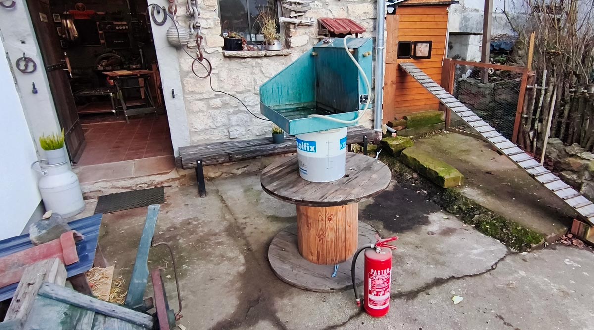 Für die Reinigung habe ich erstmals das Teilereinigungsgerät benutzt, das ich vor einer Weile geschenkt bekommen habe. (Danke an Jürgen!) Das Ding ist selbst schon ziemlich historisch, funktioniert aber tadellos. Ich habe als Reinigungsmittel Petroleum verwendet. Das ist auch so gedacht, so richtig geheuer war es mir aber nicht. Deshalb habe ich es nur im Freien verwendet und der Feuerlöscher stand griffbereit. 😉