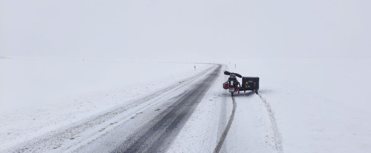 Mit der Schneekette ging es dann erstaunlich leicht weiter. Sie hat zwar irgendwo am Kotflügel oder der Schwinge angeschlagen und musste außerdem nochmal nachgespannt werden, aber sorgte für zuverlässigen Vortrieb. Genial!